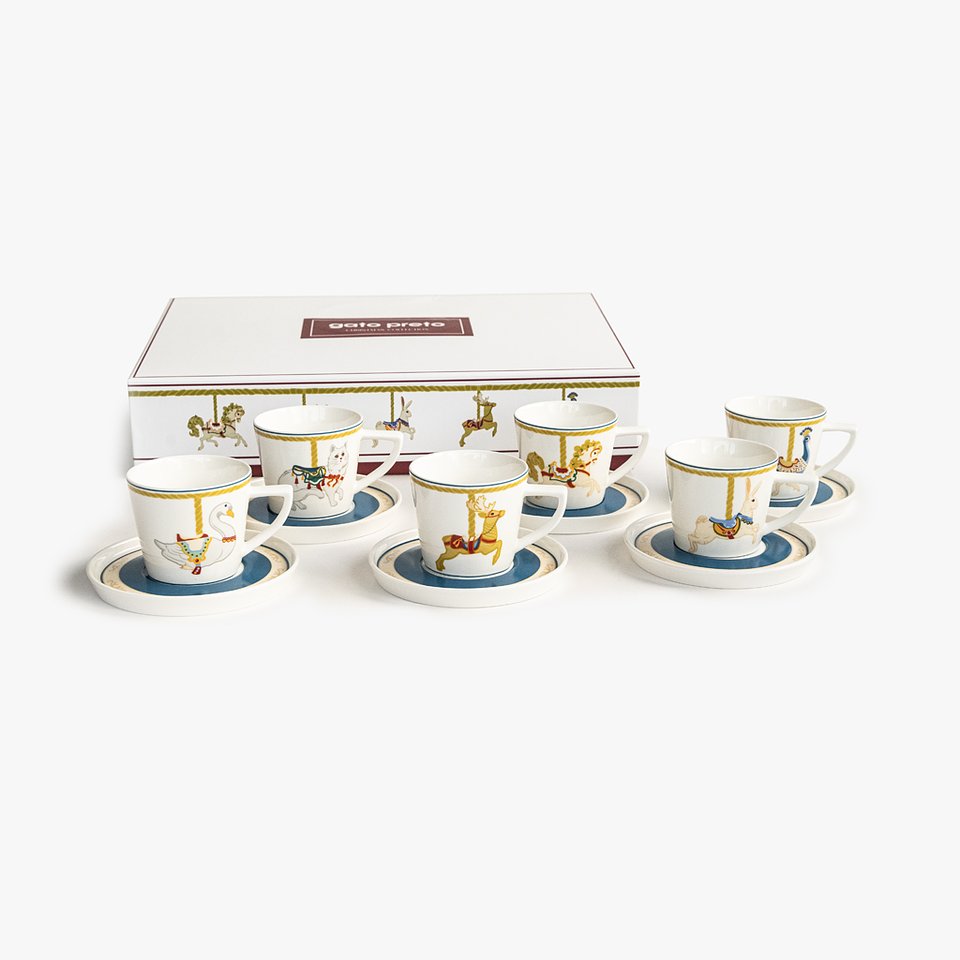 1. Manta com Sherpa Nutcracker KITSCH PVP 29,99€ | 2. Jarra Alegria 2A Donas PVP 37,99€ | 3. Conjunto de 6 Chávenas de Chá CARROSSEL PVP 39,99€ | 4. Conjunto de 6 Chávenas de Café CARROSSEL PVP 31,99€ | 5. Tábua com cortador de Pizza COOK PVP 35,99€ | 6. Prato de Bolo com Espátula BLUE BIRD PVP 26,39€
