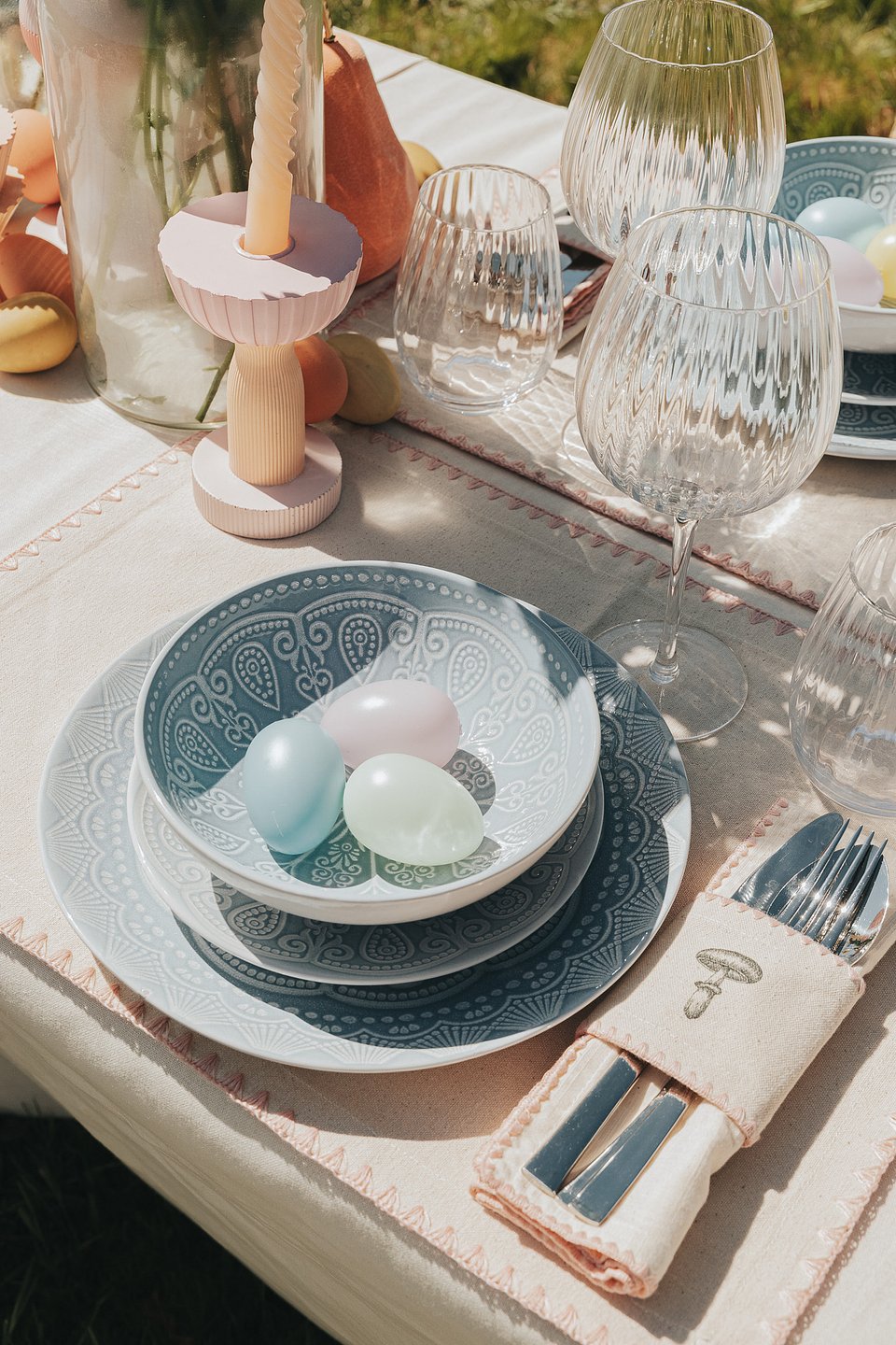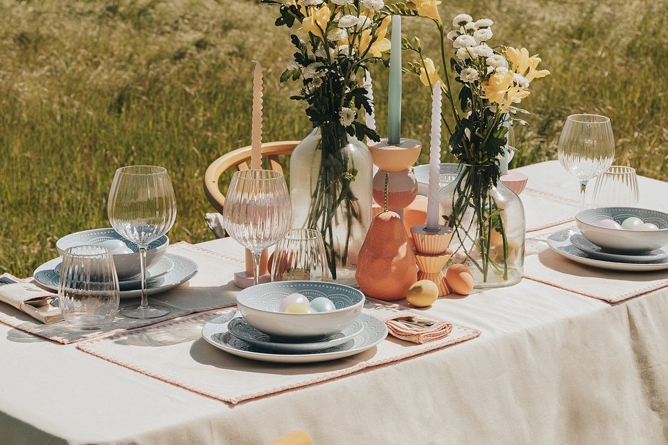 Este ano a mesa de Páscoa ganha vida nos tons pastel, detalhes em relevo e elementos naturais